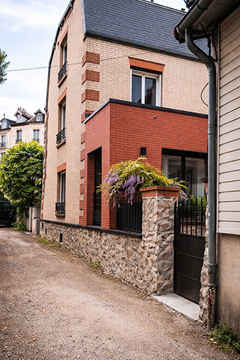 L’extension a pour souci l’intégration au bâti environnant (utilisation de la brique rouge), mais privilégie un vocabulaire contemporain (toit-terrasse), avec pour objectif global de valoriser l’intervention et le bien dans son ensemble.